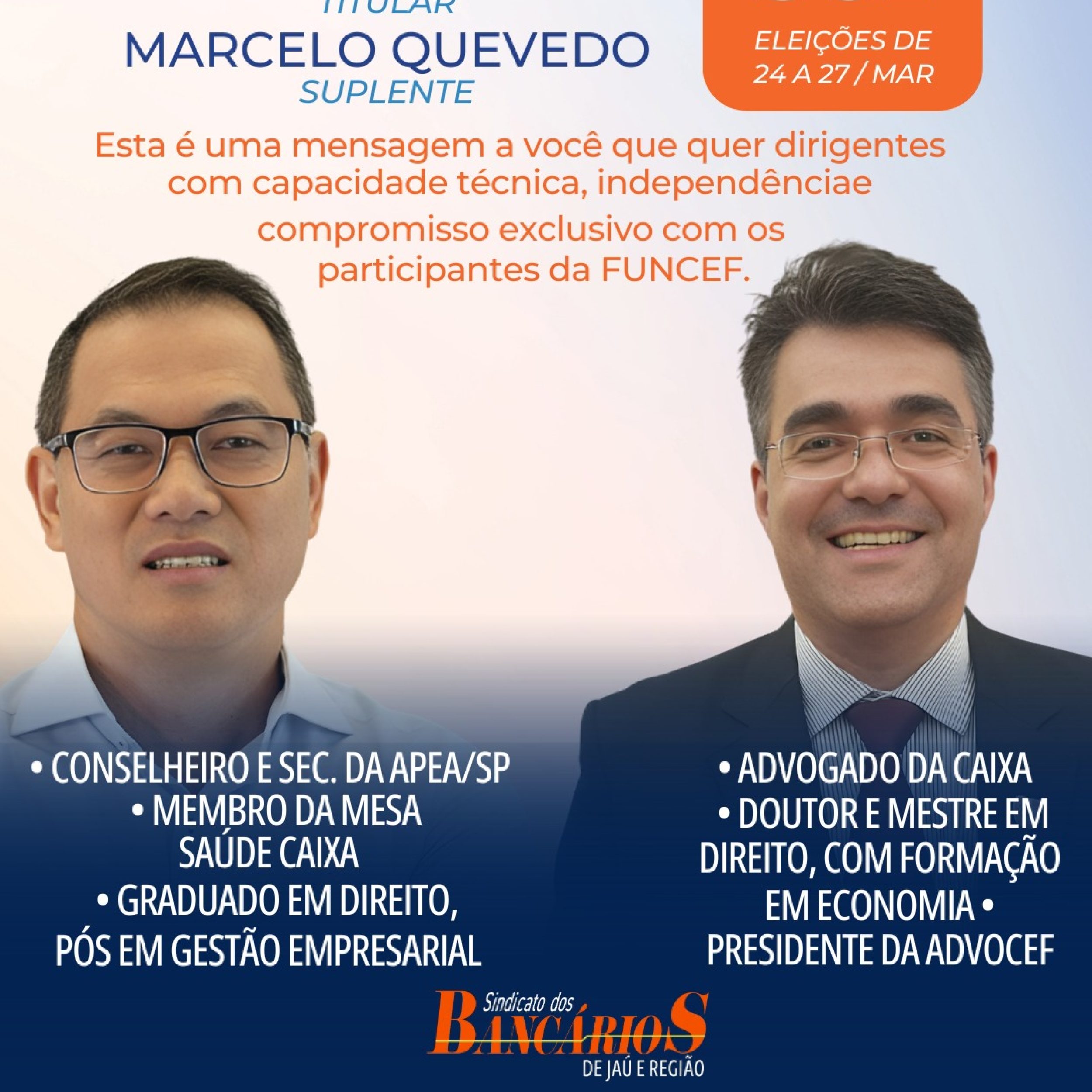 O Sindicato dos Bancários de Jaú e Região tem orgulho de apoiar a candidatura do seu presidente, Mizaki Mitiue, ao Conselho Fiscal da FUNCEF.