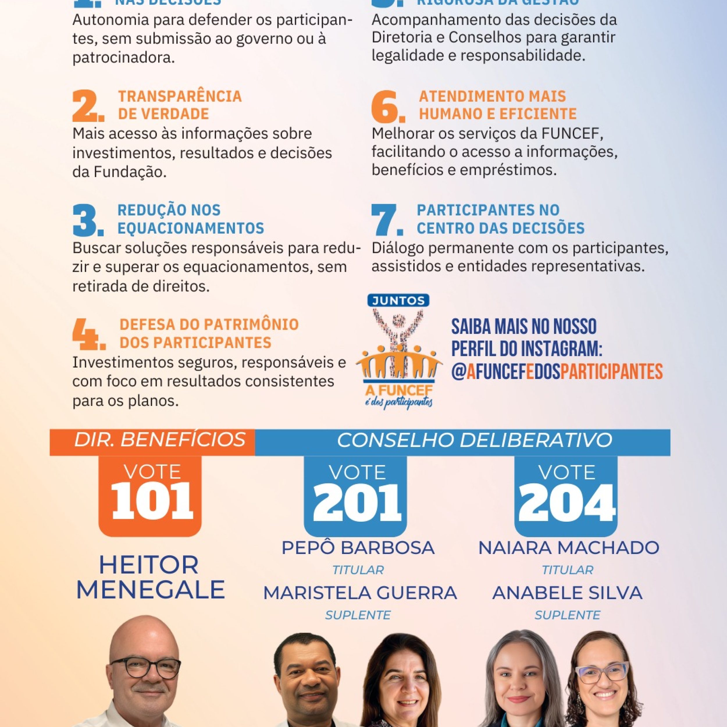 Ao lado de Marcelo Quevedo, reforça o compromisso de cuidar do patrimônio dos participantes.